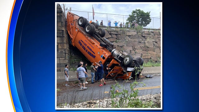 More Than A Dozen Injured When Truck Falls Off Overpass Onto Route 495 In N J Cbs New York